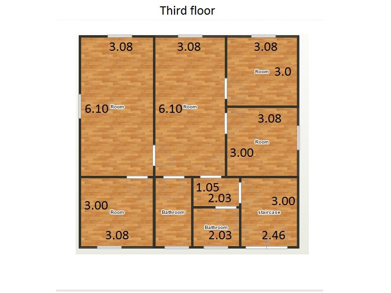 Third floor - corridor, entrance hall, lounge, three bedrooms, each with its own terrace, and to one bedroom there is an office with its own terrace, two bathrooms with toilets, one of which is smaller for guests and the other is a large, terrace;