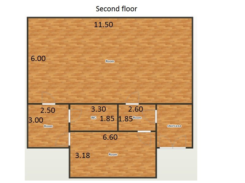 Second floor - corridor, entrance hall, huge living room with kitchen and dining area and three terraces, room with a terrace, large room with a terrace, large bathroom with toilet;