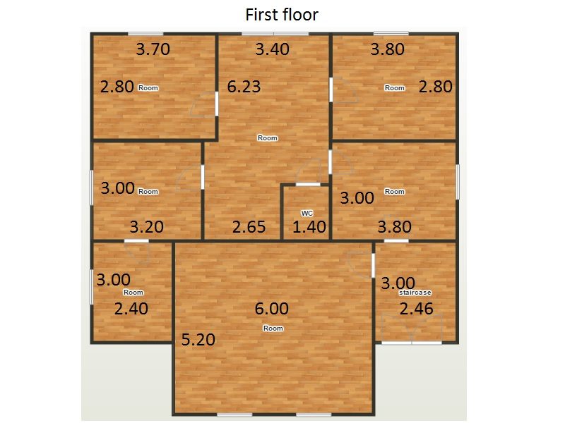 First floor - entrance/terrace, large entrance hall, five rooms, small shower room with toilet, large room, corridor, terrace;