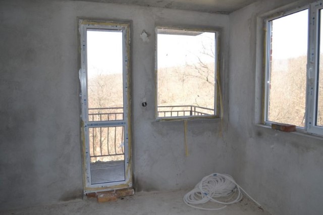Finishing works: The house is with monolithic, reinforced concrete construction and brick masonry. New roof with roof tiles, waterproofing of the foundation, made electrical installation in the whole house with an account, made plumbing and sewerage installations in the whole house with an account, the sewerage is discharged to a concrete shaft - septic tank, cement plaster on the walls, installed aluminum doors with thermopanels on the sanitary units, installed German PVC joinery brand VEKA with a double glazing.