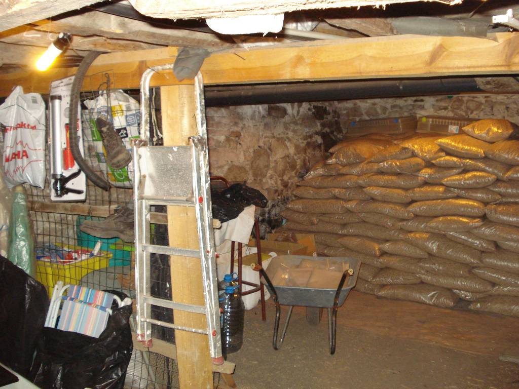 The ground floor of the house consists of a study/office, possible third bedroom and a workshop containing a central heating boiler equipped with a new high spec Pellet Burner. There is also a very large completely dry earth floored celler adjoining, providing storage for several tons of pellets, garden furniture, etc.