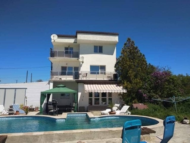 For sale a beautiful, fully furnished, three-storey house with a great pool and an incredible sea view, 2,5 km away from the beach, the village of Topola, Kavarna municipality