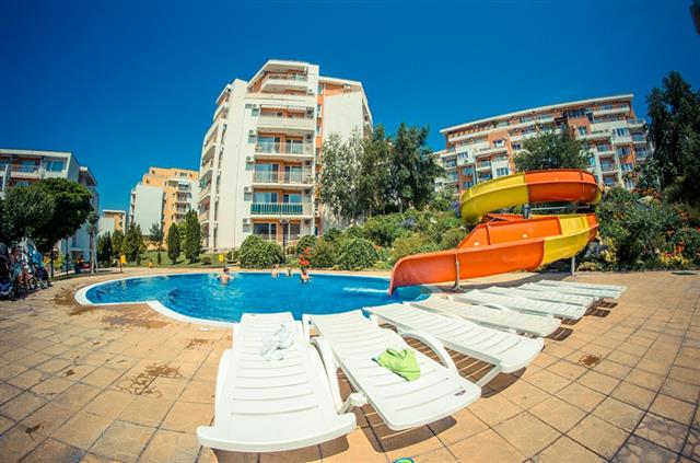 Description: The complex Crown Fort Club is situated 250 meters from the sea, between Elenite Resort and the town of Sveti Vlas. The complex is surrounded by wood and has magnificent view. The complex offers owners a huge number of amenities: three restaurants with Bulgarian and European cuisine, bars and cafes, three supermarkets, gym, sauna, Internet club, beauty centre, massage studio, medical centre, kid's club, bike rental, hairdresser, exchange, tourist agency, rent-a-car, shop for furniture and home accessories, children playgrounds, 24-hour security, secured parking, 17 swimming pools for adults and children, with artificial waves and Jacuzzi, life guards, two tennis courts/football fields with lighting, mini-golf course, training golf course, billiards, table-tennis, computer games, many landscaped areas.