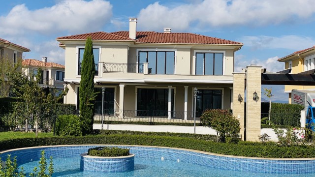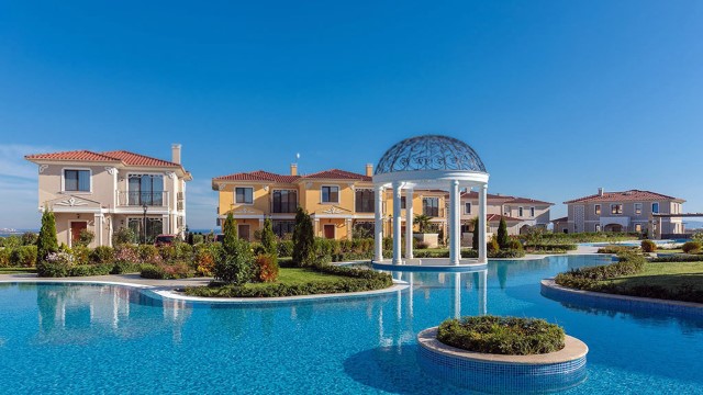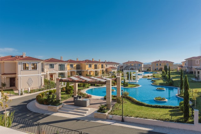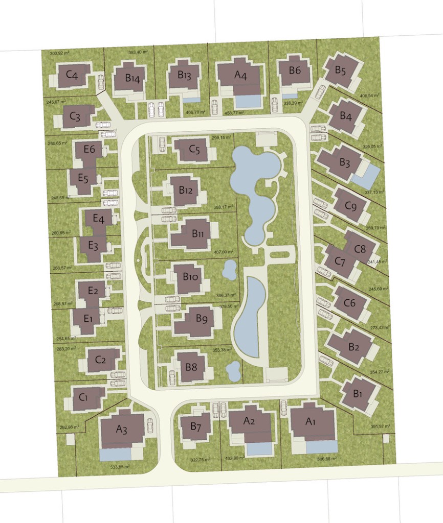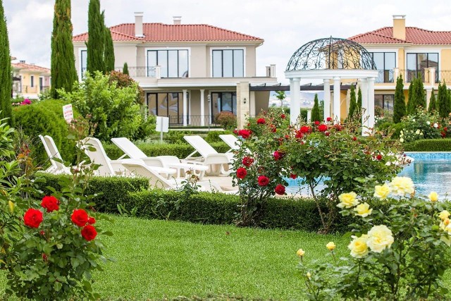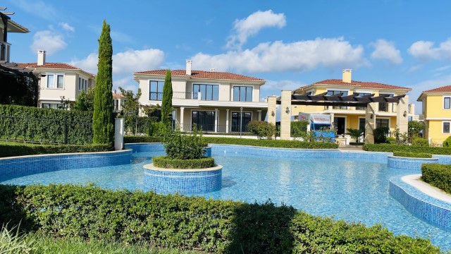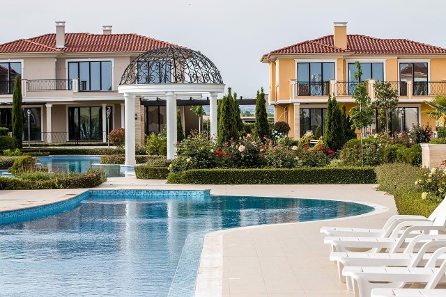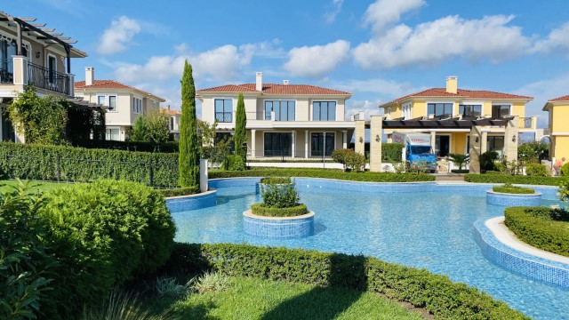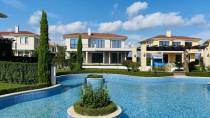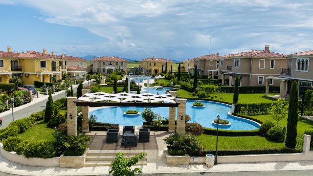 Description: Victoria Lakes is a complex of 33 luxurious houses in Mediterranean style, each of which has its own yard area, soft and warm colors, ornaments on the facades. They are set around a spacious relaxation area which includes summer house, fountain, swimming pool, beautiful park with alleys for walks and green areas, tennis court, football field, basketball court, limited access, security system, year-round service. From each house has a sea view.