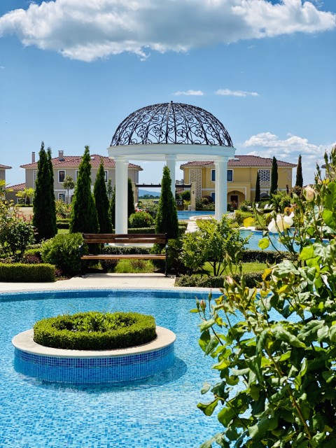 Location: The house is located in the prestigious gated complex of houses Victoria Lakes. The complex is located in one of the most beautiful and picturesque regions of the Bulgarian Black Sea coast, not far from the town of Pomorie. The complex is located on a hill, which is the highest point in the area, with an incredible view to Pomorie and Burgas Bay. The proximity of Burgas city and the resort town of Pomorie, providing an ideal opportunity for year-round residence and recreation. Connectivity - 10 km from Burgas, 5 km from the town of Pomorie and 20 km from Sunny Beach Resort.