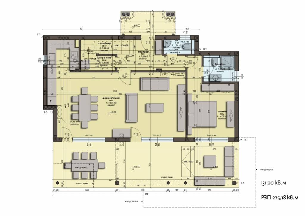 First floor (area of 131,20 sq.m) - corridor, spacious living room with kitchen and dining area, bedroom with an ensuite shower/bathroom with toilet, toilet and veranda with an access from the living room and bedroom;