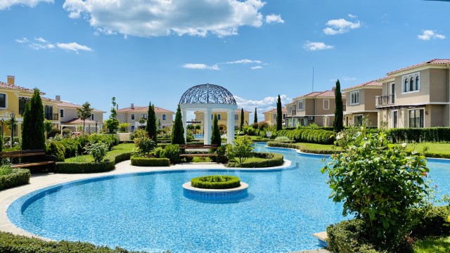 For sale a fully finished, two-storey house in Victoria Lakes complex, 4 km away from the beach in Sarafovo area, town of Pomorie, Pomorie municipality