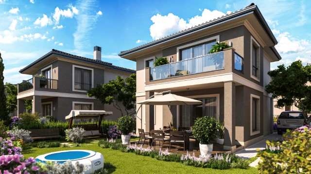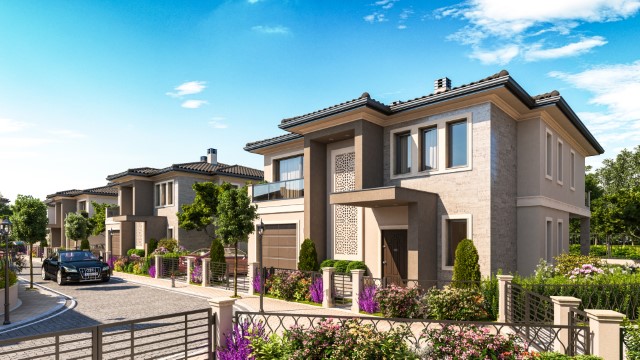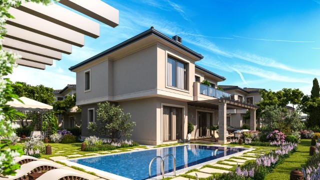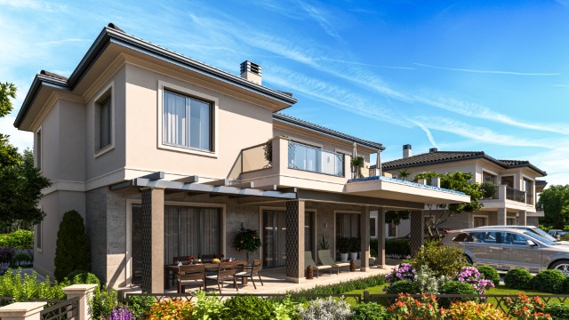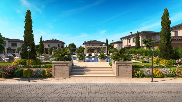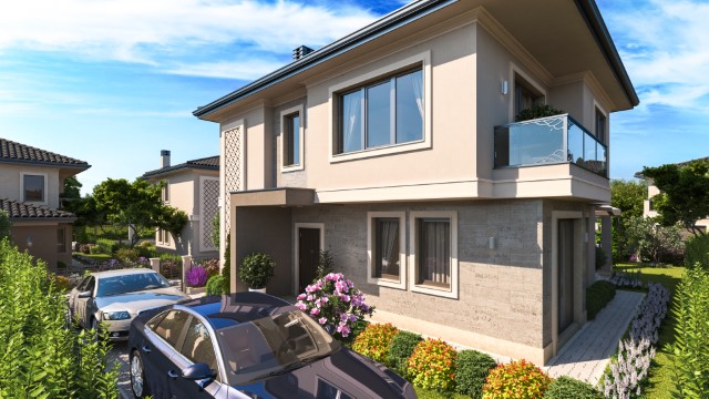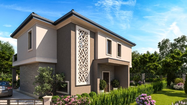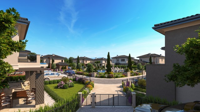 Description: Victoria Hill South is a complex of 20 luxurious houses in Mediterranean style, each of which has its own yard area, soft and warm colors, ornaments on the facades. They are set around a spacious relaxation area which includes summer house, fountain, swimming pool, beautiful park with alleys for walks and green areas, tennis court, football field, basketball court, limited access, security system, year-round service. From each house has a sea view.