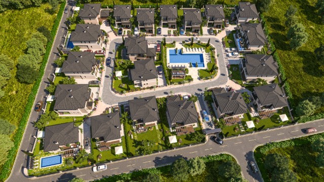 The houses are in a finished state. They are equipped with everything necessary for your luxurious accommodation. The infrastructure includes already constructed asphalt road to the complex, street network, sidewalks, grounds, street and park lightning, power substation, water-conduit and effluent treatment plant. The electrical wiring and plumbing are done according to European quality standards. The houses have a monolithic reinforced concrete structure, the walls are built with WIENERBERGER bricks, with perfect hydro-, thermal- and sound- insulation, armoured entrance and laminated HDF interior doors, multi-chamber PVC joinery with double glazing windows, fine stoneware tiles, terracotta and laminate on the floors, latex painted walls and ceilings, sanitary units - terracotta tiled floor, faience on the walls, sanitary ware, bathtubs/shower cabins, water heaters. The roof system is BRAMAC. In each of houses provide the possibility of installing individual heating systems such as heat pumps or underfloor heating, as well as the "smart home" function. If you happen to buy a house at the construction stage, all your personal preferences will be taken into account. The access to the complex is under control which provides peace and security.
