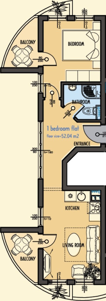 Description: We offer you the possibility of owning your own holiday home at the foot of the mountain, with magnificent panoramic sea views. The one-bedroom apartment is situated in Sunset Kosharitsa complex, which is located in the resort village of Kosharitsa. The property is fully finished, one-bedroom apartment, which is situated on the first residential floor in four-storey residential building with an elevator, with a total built-up area of 64,94 sq.m and a built-up area of 52,04 sq.m, distributed between a corridor, living room with kitchen and dining area, bedroom, shower room with toilet and two terraces to each of the rooms, overlooks the surrounding nature, to the tennis court and one of the pools in the complex. The apartment is fully finished and has a fully finished shower room with toilet.