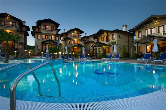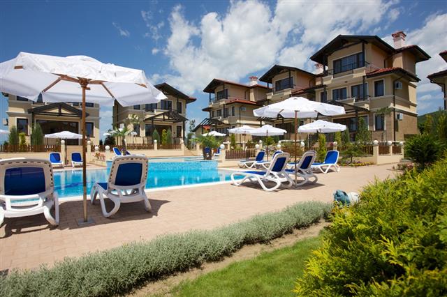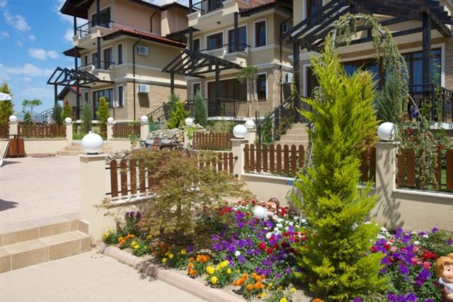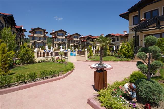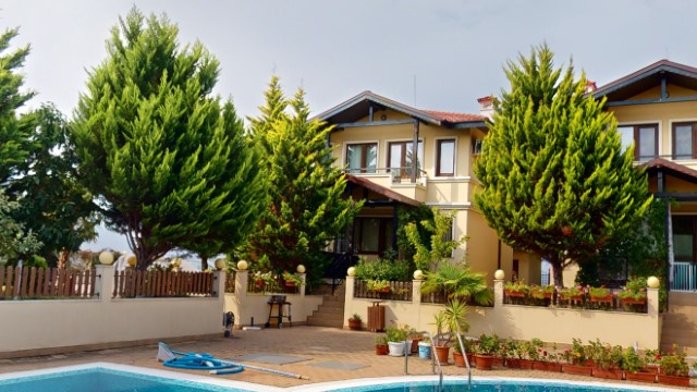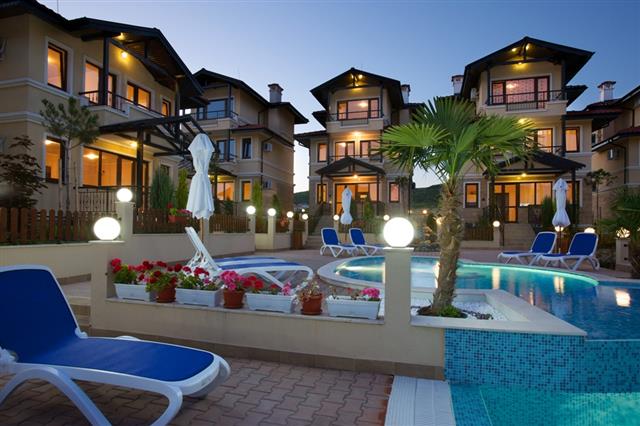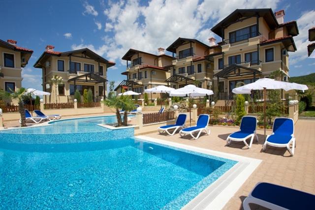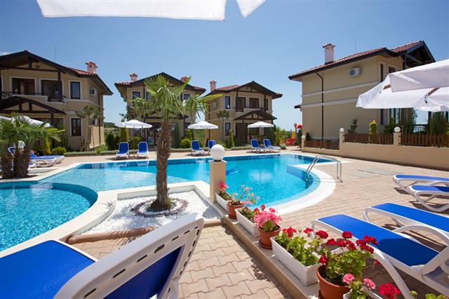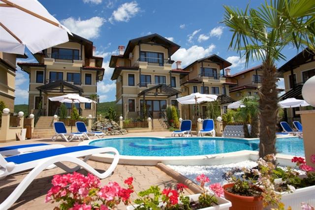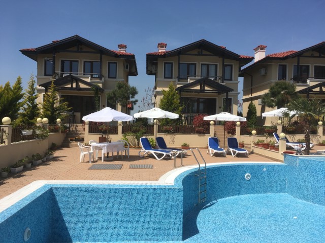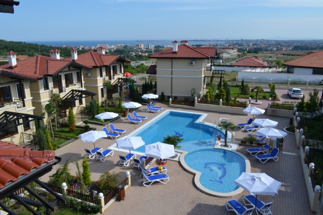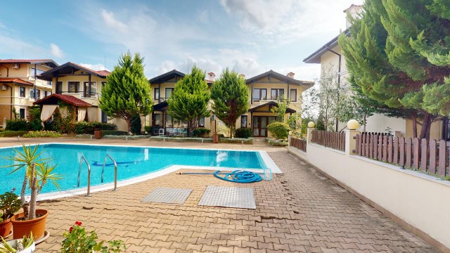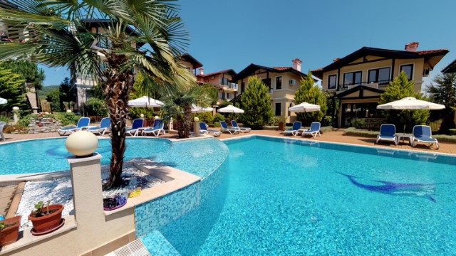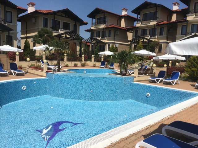For sale a luxury, fully furnished, three-storey house in a complex about 2 km away from the beach in Sunny Beach Resort, Nesebar municipality