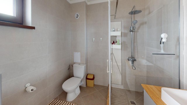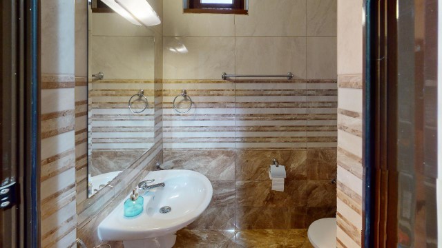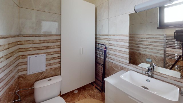 Finishing works: The house has a reinforced concrete construction and brickwork, external hydro- and thermal insulation. The house is fully finished - terracotta tiled and laminated floors; latex painted walls and ceilings; placed PVC joinery; placed PVC entrance and MDF interior doors; sanitary units - fully finished and equipped, terracotta tiled floor, faience on the walls, sanitary ware, shower cabin, water heaters; installed Air conditioning in all rooms; installed central heating with boiler and radiators in all rooms.