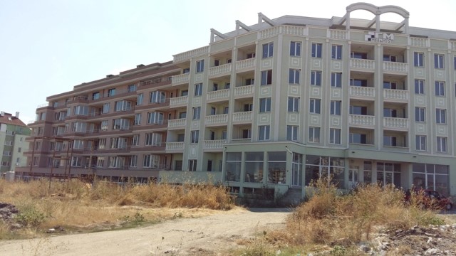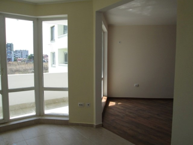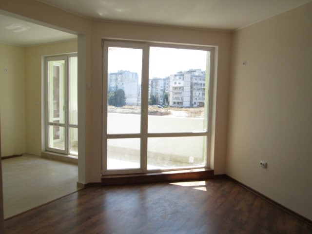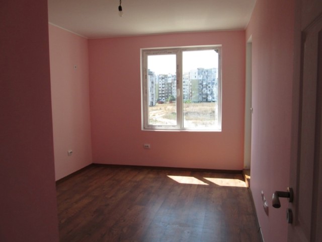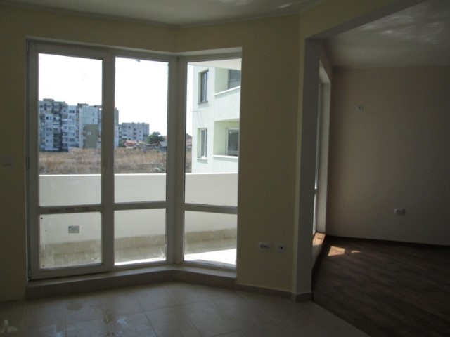 Description: We offer for sale fully finished two-bedroom apartment, located in Meden Rudnik residential area - zone B, city of Burgas. The total area of the apartment is 65 sq.m. The apartment is situated on the third residential floor in a new six-storey quality finished brick residential building. The apartment used to be 2 bedrooms, but is turned into 1 bedroom. The second bedroom is merged with the living room. At the moment the apartment consists of a corridor, one bedroom, a large living room with space for an open plan kitchen and dining area, a bathroom with toilet and a balcony. The walls and ceilings are skimmed and painted, flooring is terracotta tilled in the corridor and kitchen and laminate in the rest of the rooms, PVC joinery and beautiful MDF interior doors. Sockets and switches fitted. The bathroom with toilet is tilled and equipped with everything needed. Balcony is tilled as well. Only a kitchen cupboards and furnishing has to be fitted in. The apartment is ready to move into. There is an attic space of 3 sq.m as well. The building is externally insulated, rendered and painted outside, with tilled corridors and staircase, elevator, parking lots available as well. The building is before receiving a certificate to establishing the suitability of the construction (Act 15).