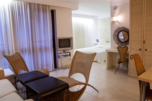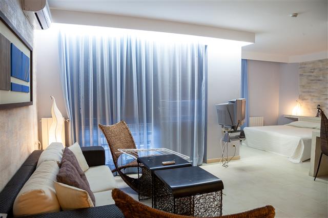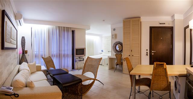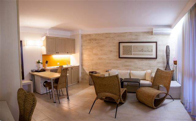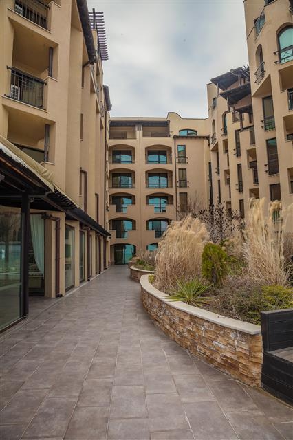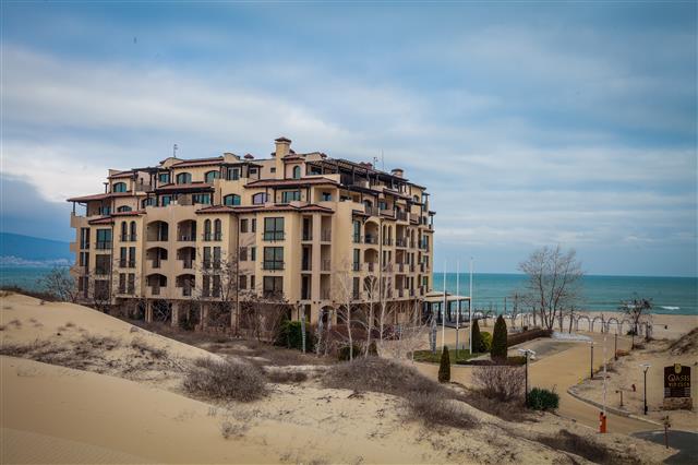 The building was built in the Mediterranean style, the facade is sandy colored, that gently blends into the beautiful beach. All the 82 suites have a magnificent view of the sea and the old town of Nessebar.