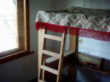 Distribution: room with kitchen, bathroom, storage room on the first floor; two bedrooms on the second floor; an external staircase connects the two floors;