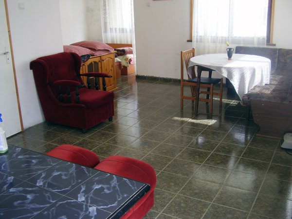 Second floor - living room with terrace with view to forest, with sleeping area - 3 beds, dining area, cozy furniture /sofa with the possibility to sleep 2 persons more/, bathroom with toilet;