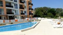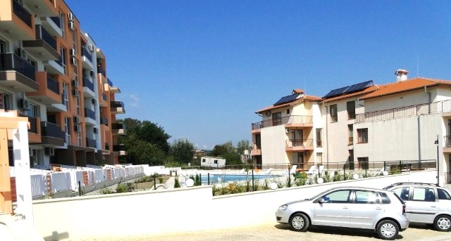 Description: We offer for sale a fully furnished studio in a complex, located in the peaceful, southern part of the town of Byala, 300 meters away from the beach. The studio is situated on the ground floor of 4 and is with a total area of 27 sq.m and built-up area of 24 sq.m. On the complex territory has a swimming pool with children's section, a green area, indoor and outdoor parking.