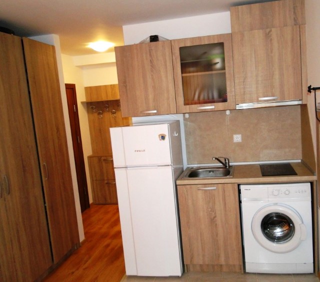Finishing works: The studio is fully finished: flooring - laminate and terracotta, balcony - fine stoneware tiles; walls and ceilings - latex painted; MDF doors; PVC joinery; fully equipped bathroom with toilet - terractta and faience, sanitary ware, water heater, accessories.