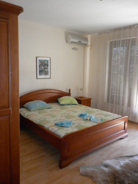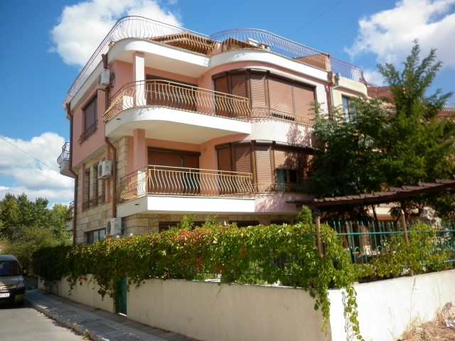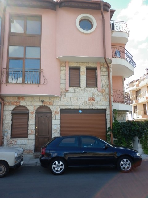 Description: We offer for sale a fully furnished and equipped with all appliances and air conditioning, four-storey house with a total built-up area of 480 sq.m, a built-up area of 78 sq.m and a yard with an area of 148 sq.m. The property is located 300 meters from the south beach in the new residential area of the new town of Nessebar. The house has the following distribution: basement - gym, sauna or restaurant, storage room, sanitary unit; first floor - garage, corridor, sanitary unit, living room with kitchen and dining area; second floor - entrance hall, sanitary unit, kitchen, dining room, living room with fireplace and sofas, two terraces; third floor - entrance hall, 3 bedrooms, one of which with ensuite bathroom with toilet and second sanitary unit, two terraces; fourth attic floor - kitchenette, bedroom, sanitary unit and a large terrace with panoramic views. The staircase that connects the floors is of a solid oak. All rooms are luxuriously furnished. And each room has a balcony. All windows are installed with brown PVC joinery with double glazing, external aluminum roller blinds. Each floor has air conditioning. The house is wired with installation for internet and TV, and there is alarm system. The facade of the house is lined with stone, made thermal insulation and is painted with mineral plaster. The yard is landscaped, there are a barbecue and a pergola.