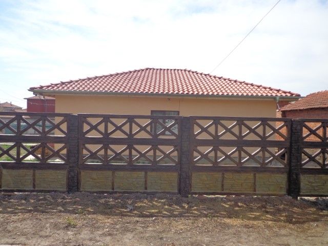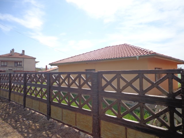 Finishing works: The house has a monolithic, reinforced concrete structure, brickwork, new roof and hydro- and thermal insulation of the facade. The house is fully finished - terracotta tiled, laminated and stucco on the floor; latex painted walls; panels on the ceiling; placed PVC joinery with double glazing with K-glass 4 seasons; placed PVC entrance and interior doors; shower room with toilet - fully finished and equipped, terracotta tiled floor, faience on the walls, sanitary ware, water heaters; heating is solved by means of a pellet boiler, installed Air conditioning.