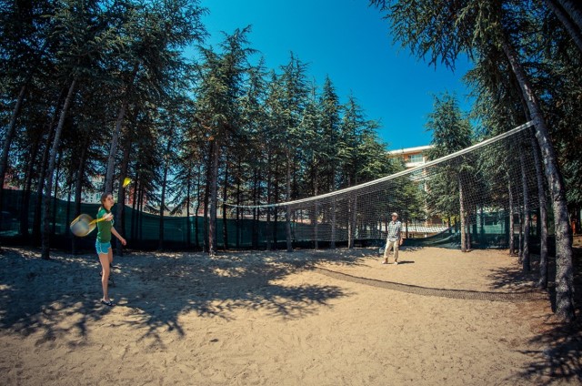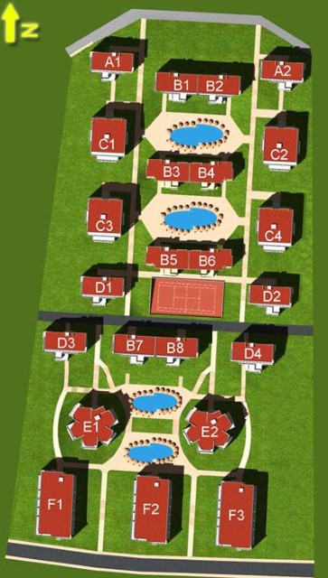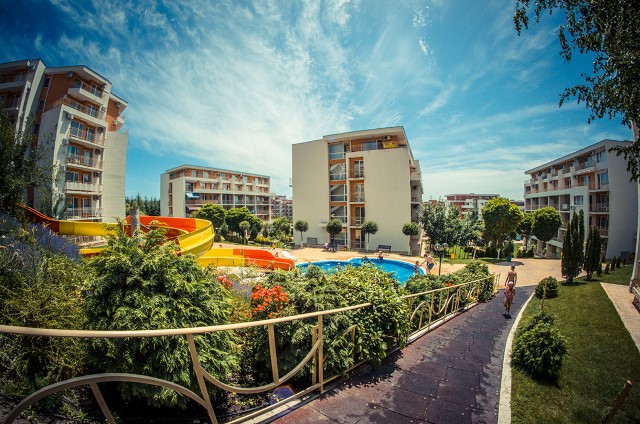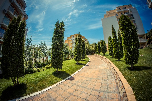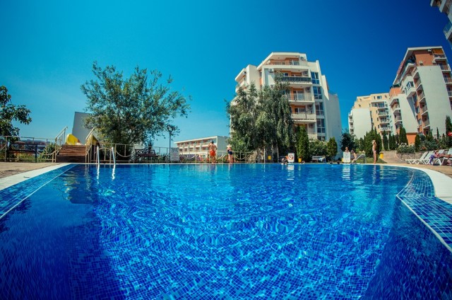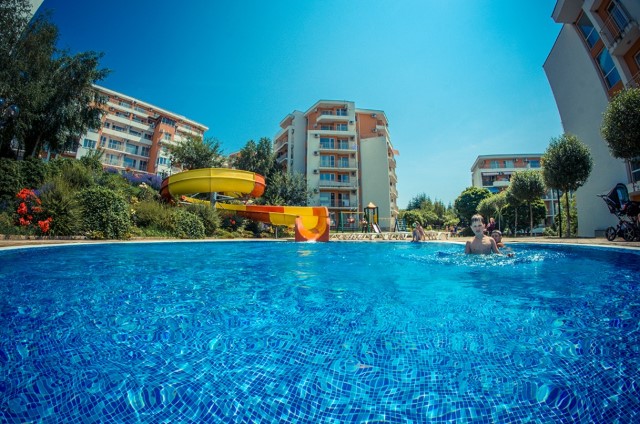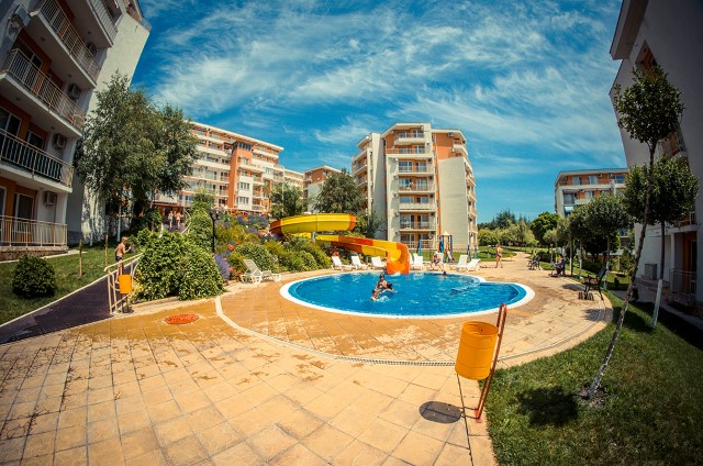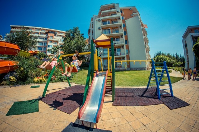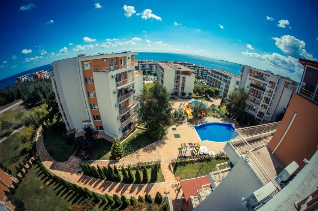 Description: The complex Crown Fort Club is situated 250 meters from the sea, between Elenite Resort and the town of Sveti Vlas. The complex is surrounded by wood and has magnificent view. The complex offers owners a huge number of amenities: three restaurants with Bulgarian and European cuisine, bars and cafes, three supermarkets, gym and outdoor fitness facilities, SPA salon, hammam, sauna, Internet club and Wi-Fi in the territory, beauty centre, massage studio, medical centre, kid's club, bike rental, hairdresser, exchange, tourist agency, rent-a-car, shop for furniture and home accessories, children playgrounds, 24-hour security, secured parking, 17 swimming pools for adults and children, with artificial waves and Jacuzzi, life guards, free sunbeds, two tennis courts/football fields with lighting, mini-golf course, training golf course, billiards, table-tennis, computer games, many landscaped areas.