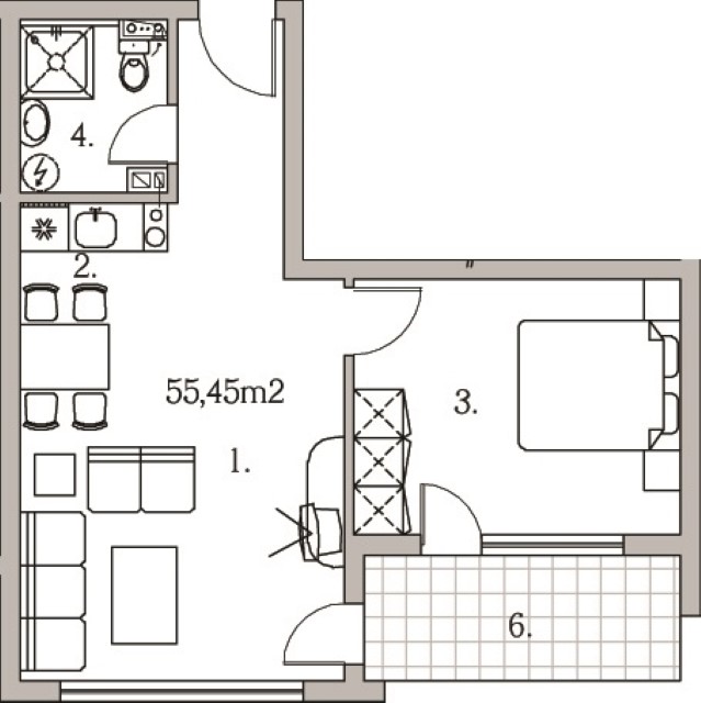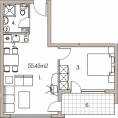 We offer for sale a fully furnished, one-bedroom apartment with a total built-up area of 61 sq.m and a built-up area of 55,42 sq.m, situated on the first residential floor in a five-storey residential building.