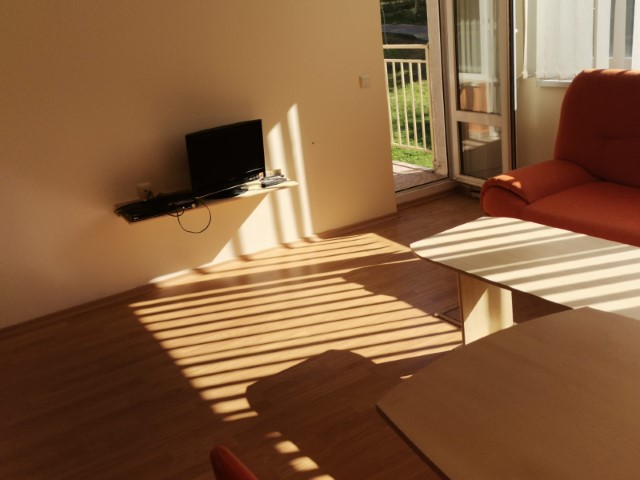 Finishing works: The apartment is fully finished - terracotta tiled and laminated floors; latex painted walls and ceilings; placed entrance and MDF interior doors; placed PVC joinery; shower room with toilet - fully finished and equipped, terracotta tiled floor, faience on the walls, sanitary ware, shower cabin, water heater; installed Air conditioning in both rooms.