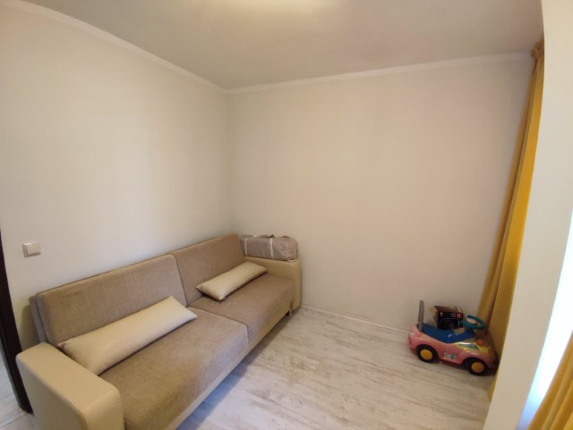 Finishing works: The apartment is fully finished - laminated and terracotta tiled floors; latex painted walls and ceilings; placed PVC joinery; placed entrance and MDF interior doors; sanitary unit - fully finished and equipped, terracotta tiled floor, faience on the walls, sanitary ware, shower cabin, water heater; installed Air conditioning in the bedroom; installed fireplace in the living room.