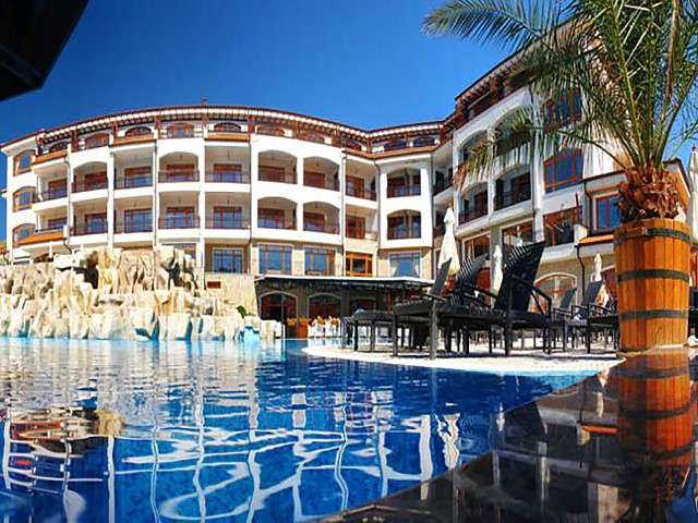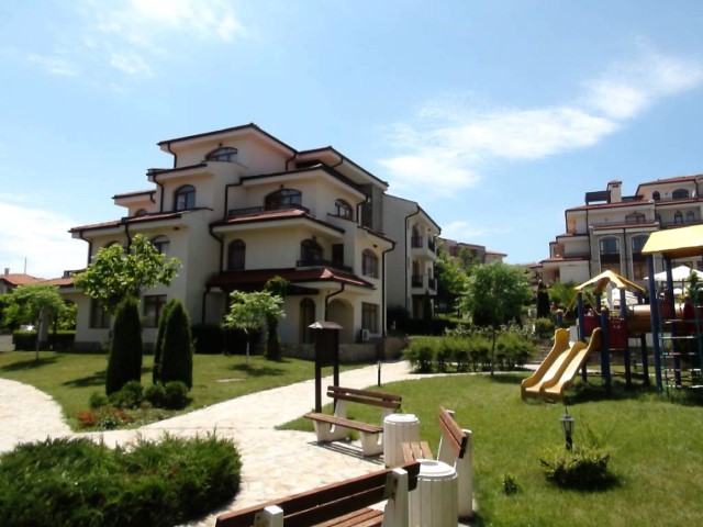 All the complexes at "Vinyards Spa Resort" are finished in a beautiful architectural style with references to Bulgarian traditional architecture - red roof tiles, wooden paneling, stone cladding. On the territory of the year-round functioning complex perfectly combine 5 residential buildings with 222 holiday apartments, 34 villas, 4-star hotel with lush greenery. The complex is secluded and protected by video surveillance and security. It offers many facilities for sports, recreation and entertainment, various establishments and water areas, its own meadow, vineyards, a winery and its own wine production, as well as a wide variety of amenities and modern services: //// gated area with limited access; two outdoor swimming pools for adults and children with sun beds and umbrellas; pool bar; indoor swimming pool; 24-hour reception; concierge; lobby bar; piano bar; elevator; free Wi-Fi throughout the complex; childrens playground and kindergarten; games room - table tennis, fitness, billiards and etc; park landscaping; alleys with places for recreation; a poolside restaurant serving Bulgarian and Mediterranean cuisine; an English pub offering sandwiches, pizza, barbecue; SPA and wellness center with massages and procedures for relaxation, mud treatment, healing procedures with lye, kinesitherapy procedures, several saunas, hot hub, steam bath, Russian bath, ice room, fitness, solarium, jacuzzi; shop and supermarket; beauty salon; postal services; BBQ area; open and closed sports center with riding school, billiards, table tennis; conference and business hall, Internet hall; year-round security and maintenance; guarded parking.