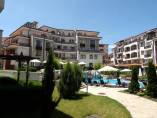 All the complexes at "Vinyards Spa Resort" are finished in a beautiful architectural style with references to Bulgarian traditional architecture - red roof tiles, wooden paneling, stone cladding. On the territory of the year-round functioning complex perfectly combine 5 residential buildings with 222 holiday apartments, 34 villas, 4-star hotel with lush greenery. The complex is secluded and protected by video surveillance and security. It offers many facilities for sports, recreation and entertainment, various establishments and water areas, its own meadow, vineyards, a winery and its own wine production, as well as a wide variety of amenities and modern services: gated area with limited access; two outdoor swimming pools for adults and children with sun beds and umbrellas; pool bar; indoor swimming pool; 24-hour reception; concierge; lobby bar; piano bar; elevator; free Wi-Fi throughout the complex; childrens playground and kindergarten; games room - table tennis, fitness, billiards and etc; park landscaping; alleys with places for recreation; a poolside restaurant serving Bulgarian and Mediterranean cuisine; an English pub offering sandwiches, pizza, barbecue; SPA and wellness center with massages and procedures for relaxation, mud treatment, healing procedures with lye, kinesitherapy procedures, several saunas, hot hub, steam bath, Russian bath, ice room, fitness, solarium, jacuzzi; shop and supermarket; beauty salon; postal services; BBQ area; open and closed sports center with riding school, billiards, table tennis; conference and business hall, Internet hall; year-round security and maintenance; guarded parking.