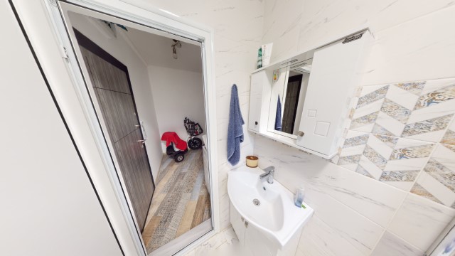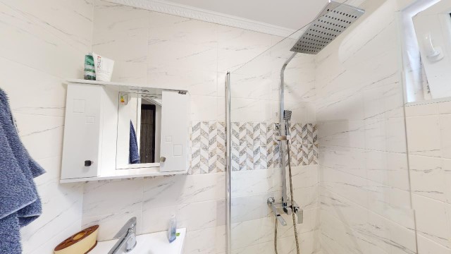 Finishing works: The apartment is fully finished - terracotta tiled and laminated floors; latex painted walls and ceilings; placed 5-chamber PVC joinery REHAU with double glazing "4 seasons"; placed armored entrance and MDF interior doors (Czech production); sanitary unit - fully finished and equipped, terracotta tiled floor, faience on the walls, sanitary ware, shower, water heater.