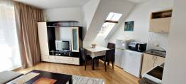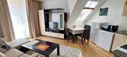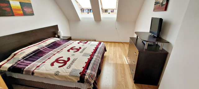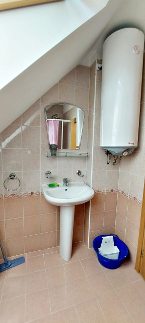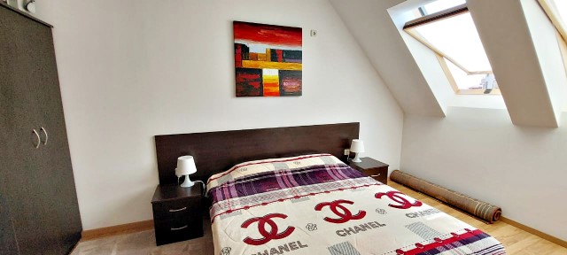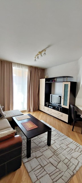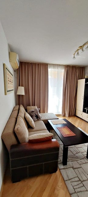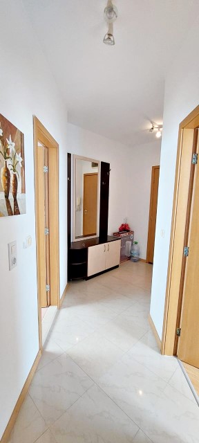 Finishing works: The apartment is fully finished - terracotta tiled and laminated floors; latex painted walls and ceilings; placed PVC joinery; placed entrance and MDF interior doors; sanitary unit - fully finished and equipped, terracotta tiled floor, faience on the walls, sanitary ware, shower cabin, water heater; installed Air conditioning in the living room.