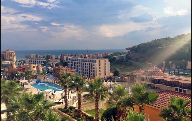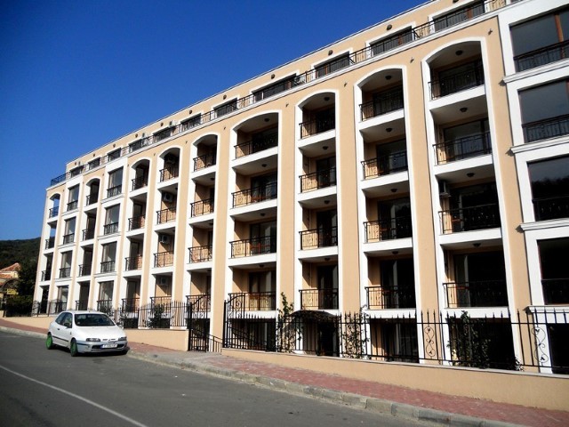 Description: Villa Astoria 2 is the second in a row complex of the series Villa Astoria and is located 180 meters from the beautiful beach of Elenite resort and 20 meters from the Aquapark. The complex is a six-storey building, which consists of 53 studios with an areas from 26,05 to 41,63 sq.m and 59 one-bedroom apartments with an areas from 53,90 to 63,09 sq.m. The building is designed in a classic Mediterranean style - in warm pastel colors, with beautiful ornament features on the facade, with cozy balconies with wrought iron railings and wooden pergolas on the top floor. The six-storey building was constructed in accordance with the highest European standards. External and internal walls are a brick construction, there is external heat insulation, finely plastered inside.