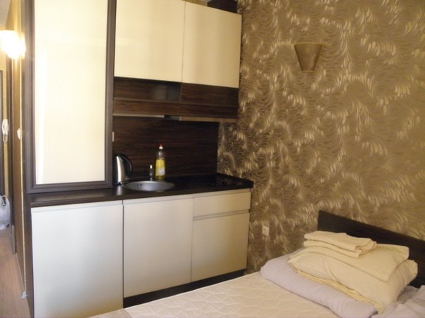 Finishing works: The studio is fully finished - laminated floors; wallpaper on the walls; latex painted ceilings; placed PVC joinery; placed entrance and MDF interior doors; sanitary unit - fully finished and equipped, terracotta tiled floor, faience on the walls, sanitary ware, shower cabin, water heater; installed Air conditioning.