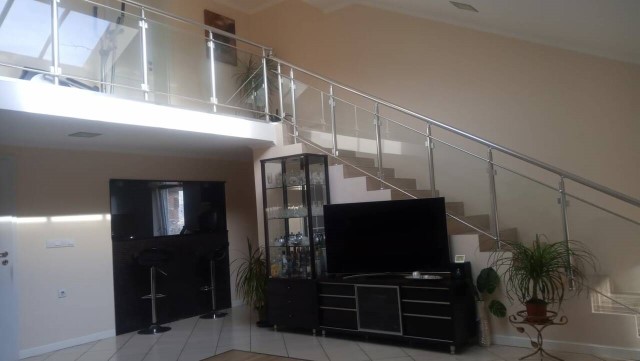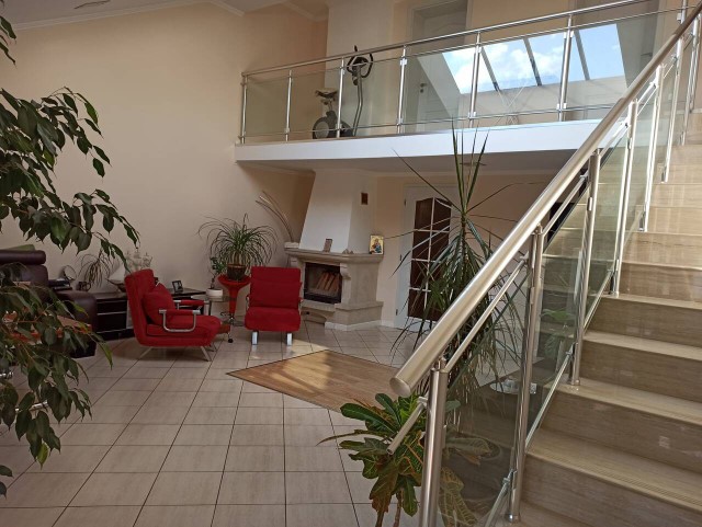 Description: We offer for sale a modern, detached, beautifuly and fully furnished with a taste, three-storey house in excellent condition with a total built-up area of 152 sq.m and a built-up area of 76 sq.m. The plot of land also has a single-storey, agricultural outbuilding - a commercial space facing the street and with a built-up area of 49 sq.m. The house was built in 1997. The house is suitable for both year-round living and relaxation. The house is connected to the public infrastructure - electricity, central water supply and sewerage. The house offers wonderful views of the village and its surroundings. The house is in excellent condition and is well maintained.