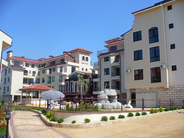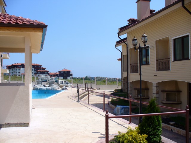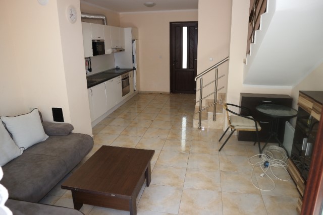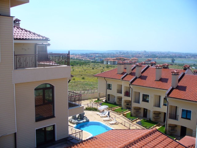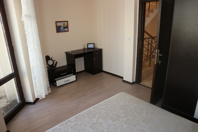 Description: We offer for sale a fully furnished, three-storey townhouse in a complex 3 km away from the beach in Sunny Beach Resort. The complex consists of two five-storey buildings and three-storey townhouses with its own pricate yard. The complex offers a swimming pool for adults and children, artificial lake, bar, pool bar, restaurant, shop, children playground and trampoline, gazebo, 24 hour security, parking, landscaping. The complex also offers amazing panoramic views of the sea and mountains, clean fresh air, peace and tranquility. The region has good transport links, Burgas International Airport is at only 20 minutes drive and international airport in Varna is at half an hour drive by car. Nearby is located also the historic town of Nesebar. The region of the complex is very quiet, the proximity of the sea and the Balkan Mountains allows a relaxing holiday. Here you can enjoy relaxing walks in the beautiful deciduous forests, mountain slopes and hills or enjoy the sunshine and warm weather on the beach in the famous Black Sea resort of Sunny Beach.