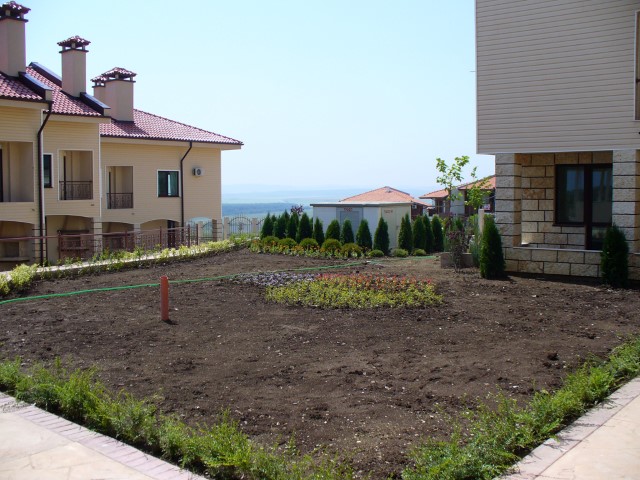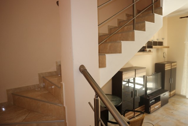 Finishing works: The house is fully finished - external heat insulation; terracota tiled and laminated floor; latex painted walls and ceilings; placed PVC joinery; placed PVC entrance and MDF interior doors; placed aluminum railings on the staircase; shower rooms with toilets - fully finished and equipped, terracota tiled floor, faience on the walls, sanitary equipment, water heaters; installed electrical wiring; installed plumbing, sewerage systems; outlets for telephone, cable TV and Internet; installed Air conditioning; there is a possibility to install a fireplace in the house.