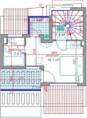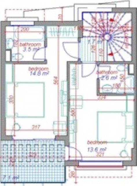 Second floor - corridor, two bedrooms, each of them with en-suite shower room with toilet and an access to a common terrace overlooking the pool and the sea;