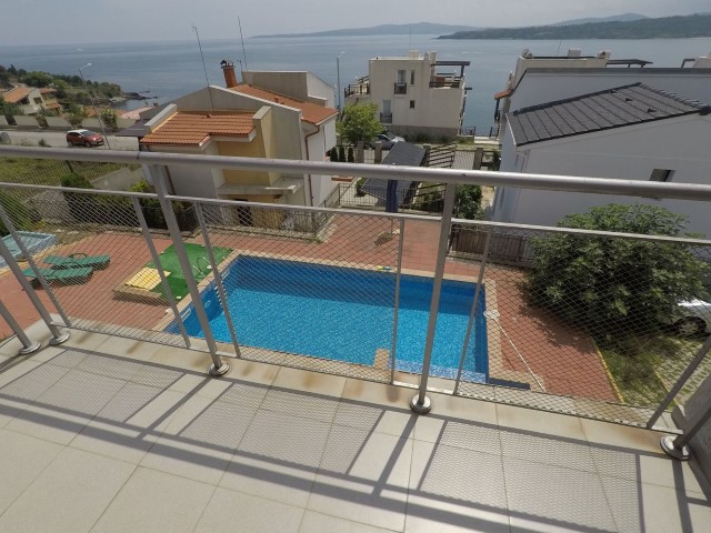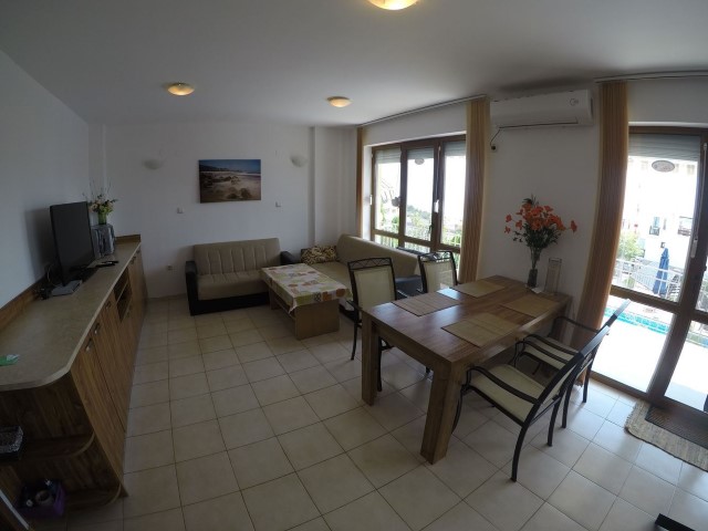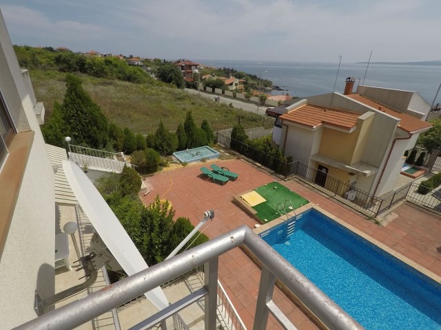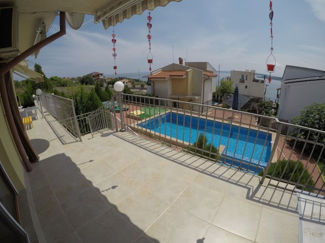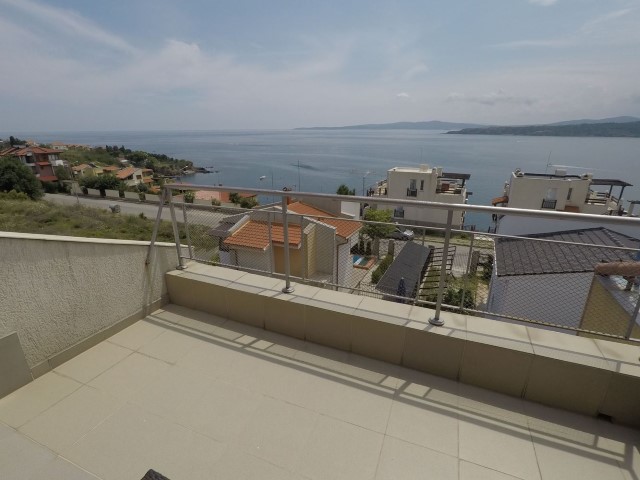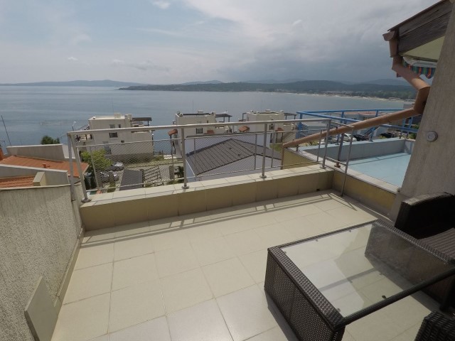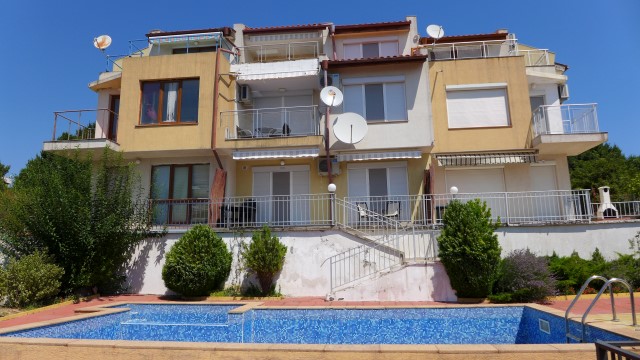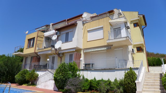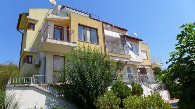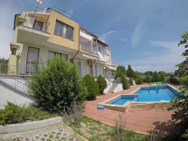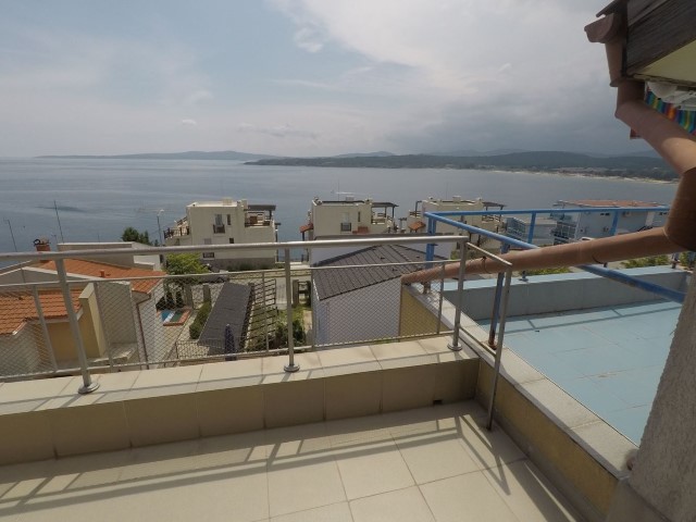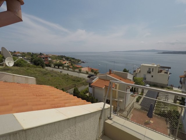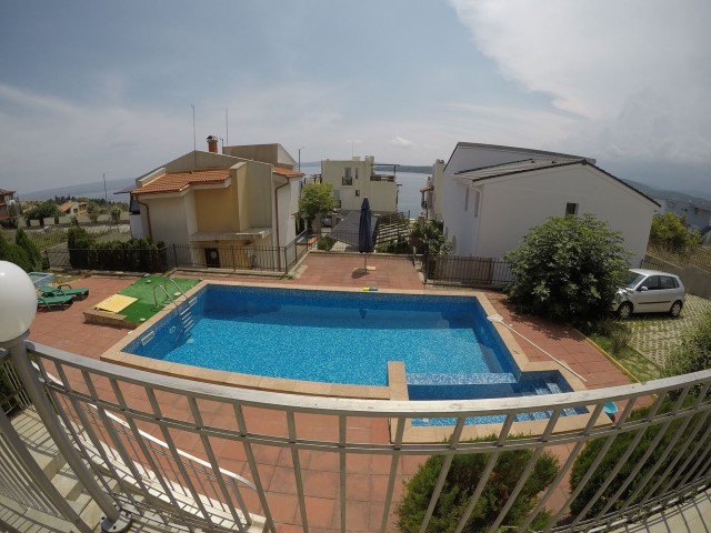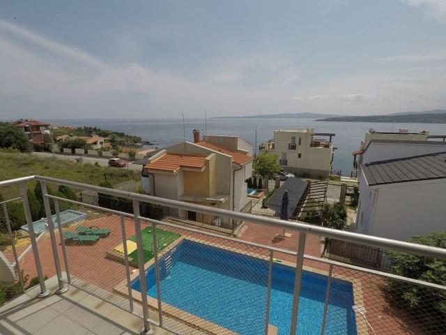 Description: We offer for sale a fully furnished, three-storey townhouse with a unique sea view, located on the southern slope of the Budzhaka area in the town of Sozopol, 600 meters away from Kavatsi beach, away from the noise and close to the entertainments. This is the perfect place for a family holiday - with a long, sandy beach, crystal blue water, clean air and refreshing green spaces - this is the modern holiday village of "Sonya". The single-family houses are built on a plot of land with an area of 1338 sq.m. The holiday Village includes 3 townhouses and 2 detached houses, as well as a common swimming pool, parking and surrounding area. Each of the houses is with south exposure and sea ciew. Only one of the houses is available for sale - the middle of the townhouses. The townhouse has a total built-up area of 143,60 sq.m and a built-up area of 46,20 sq.m.