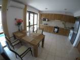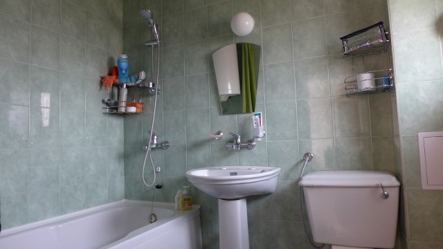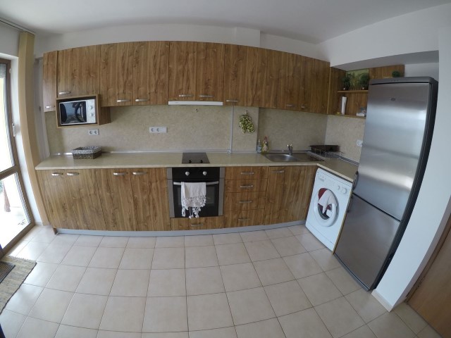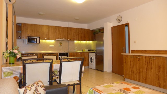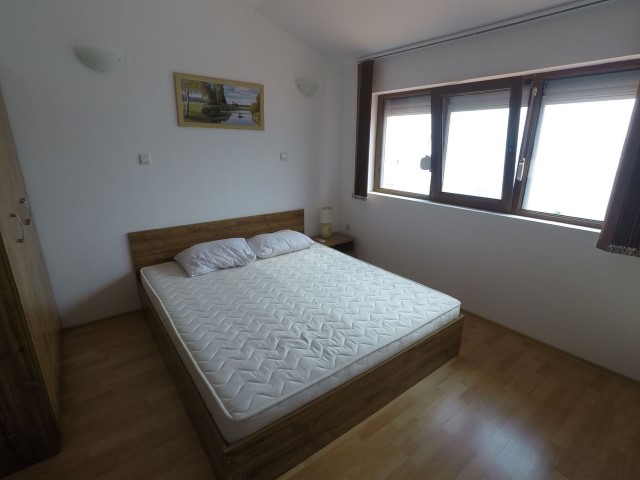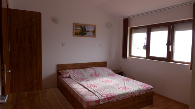 Finishing work: The townhouse is completely finished. Monolithic construction and brickwork; external thermal insulation and waterproofing; flooring - fine stoneware tiles in the living room, corridors and terraces, laminated parquet in the bedrooms; walls and ceilings - latex painted; installed PVC joinery with double glazed windows; installed MDF interior doors; sanitary units - fully finished and equipped, terracotta tiled floor, faience on the walls, sanitary ware, bathtub, water heaters; electrical installation - lighting fixtures, switches and sockets; plumbing and sewerage; Internet, satellite TV and security system; installed air conditioners in all rooms.