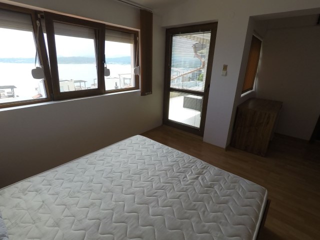 Third floor - corridor, large bedroom with an access to a terrace with upholstered furniture and incredible panoramic sea views and Kavatsi beach, bathroom with toilet and second terrace to the north with mountain views;
