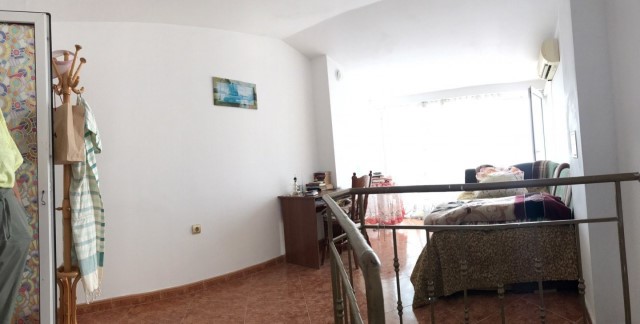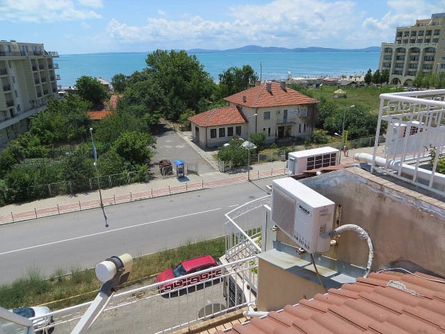 Description: We offer for sale a fully furnished, two-bedroom apartment - penthouse in a new, residential building with an Act of Permission to use granted, located in the New town of Pomorie, just 50 meters from the beach and the promenade. The apartment is located on the fourth and fifth residential floors in the five-storey building and has a total built-up area of 112 sq.m. It consists of an entrance hall, living room, kitchen with dining area, bedroom, shower room with toilet and terrace with sea view on the first level and living room, bedroom and terrace with sea view and terrace with view of neighboring buildings on the second level. The apartment is for sale fully finished, furnished and equipped. Annual maintenance fee: 200 Levs.
