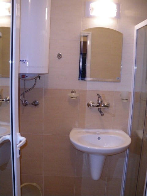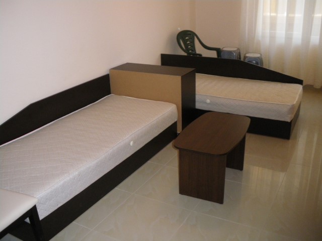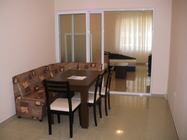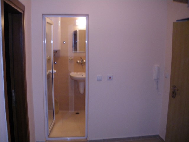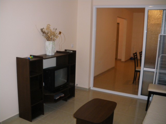 Description: We offer for sale a fully furnished, two-bedroom apartment in a newly built, residential building with an Act of Permission to use granted, located in the Old part of the town of Pomorie, not far from the Town Hall and the center, just 200 meters from the beach and the promenade and 100 meters from the center. The apartment is situated on the second residential floor in the seven-storey building and has a total built-up area of 80,76 sq.m. It consists of an entrance hall leading to a shower room with toilet, a separate bedroom on one side and a living room with a kitchen and dining area on the other. The living room is separated by sliding doors from the second bedroom, which leads to a common balcony of the two bedrooms. The apartment is for sale fully finished, furnished and equipped - three air conditioners, with built-in kitchen cupboards, beds, cupboards, TV, refrigerator.