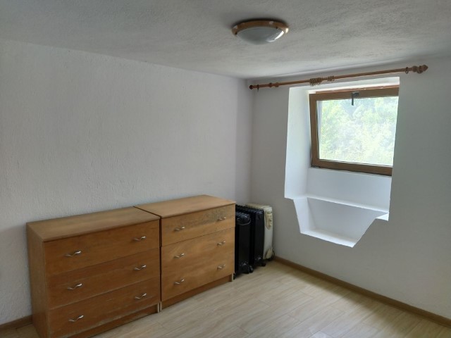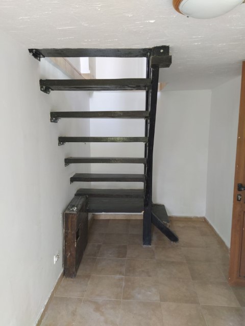 Distribution: bedroom, shower room with toilet, small room on the first floor; kitchen, two large bedrooms, large bathroom with toilet on the second floor; internal and external staircases connect both floors.