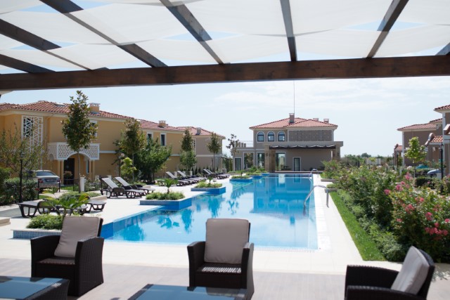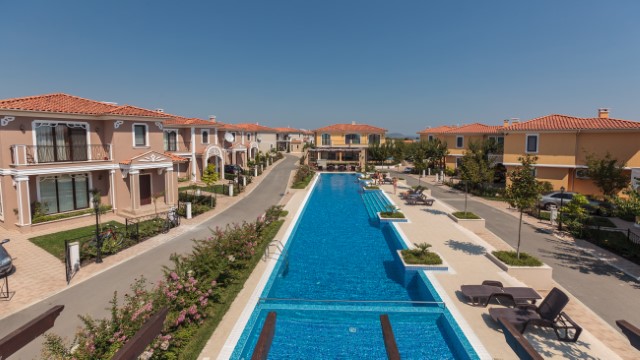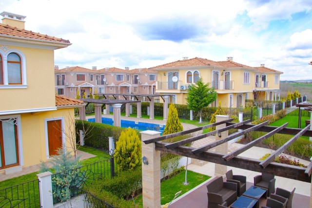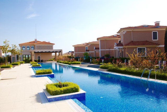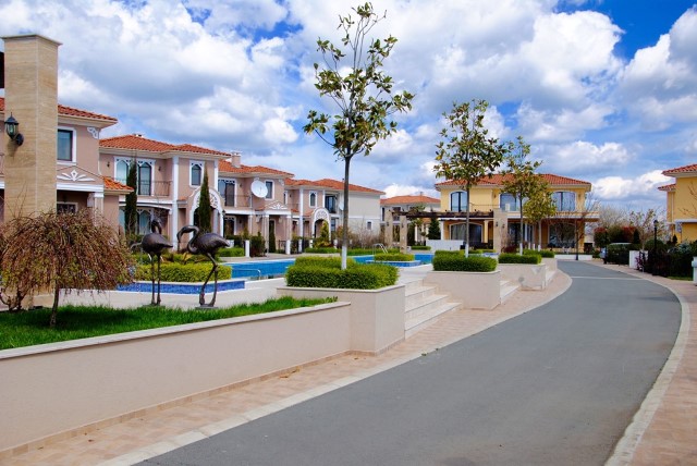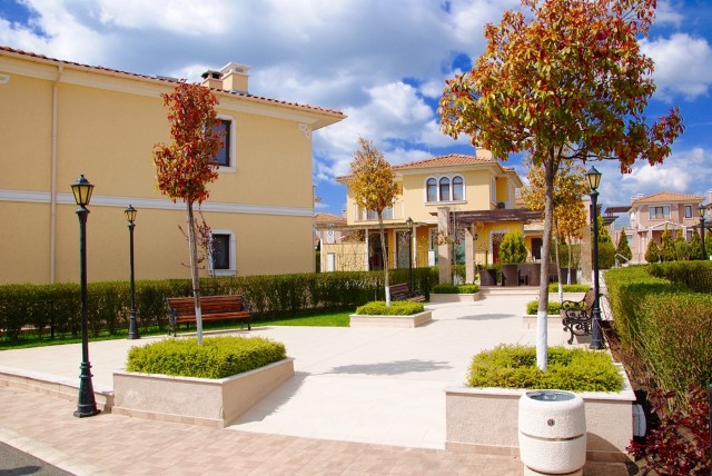 Description: Victoria Royal Garden is a complex of 28 luxurious houses in Mediterranean style, each of which has its own yard area, soft and warm colors, ornaments on the facades. They are set around a spacious relaxation area which includes summer house, fountain, swimming pool,