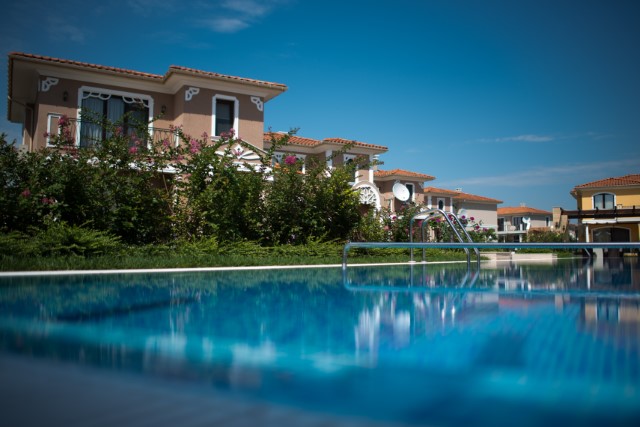 sea, pool, surrounding nature, neighboring houses