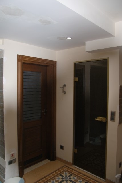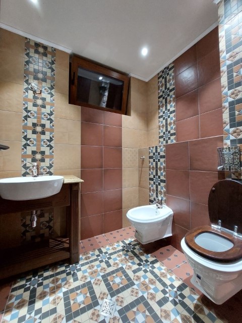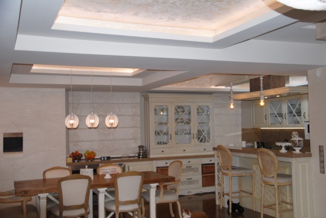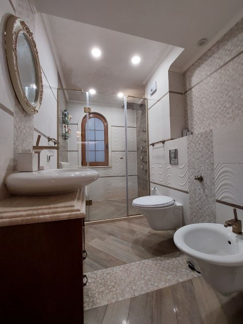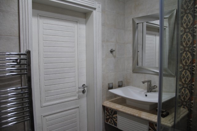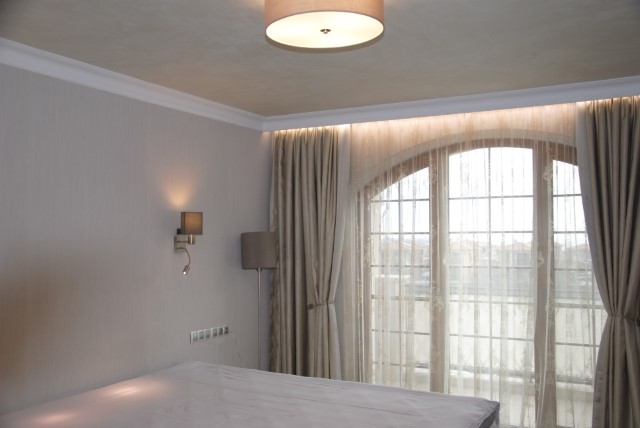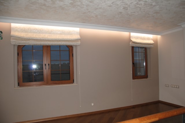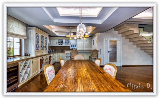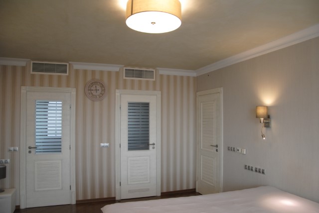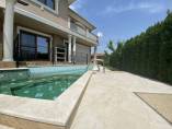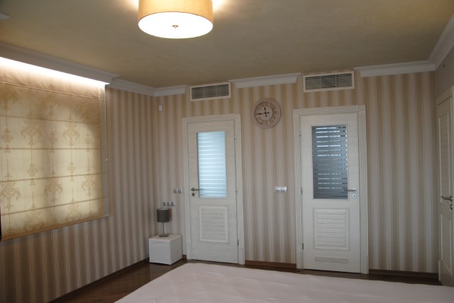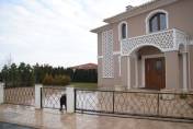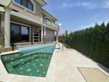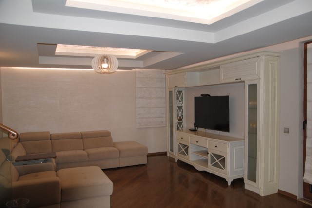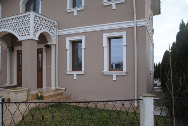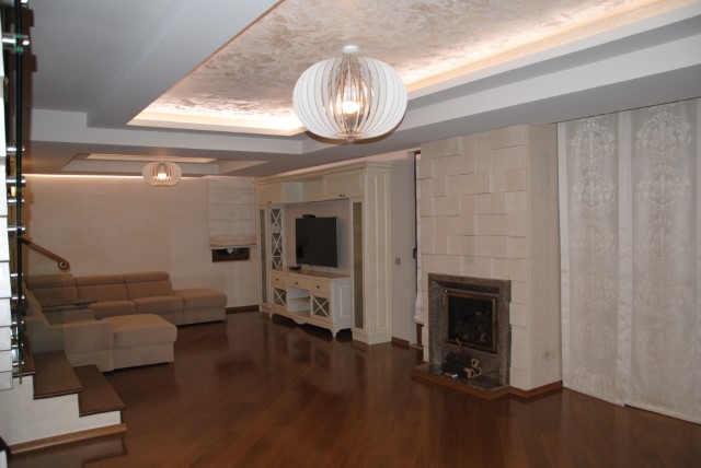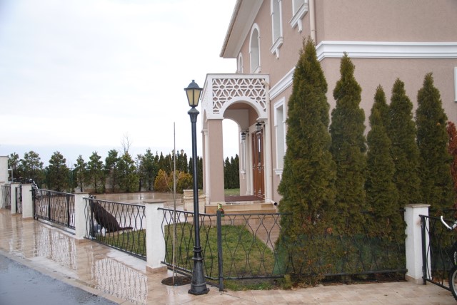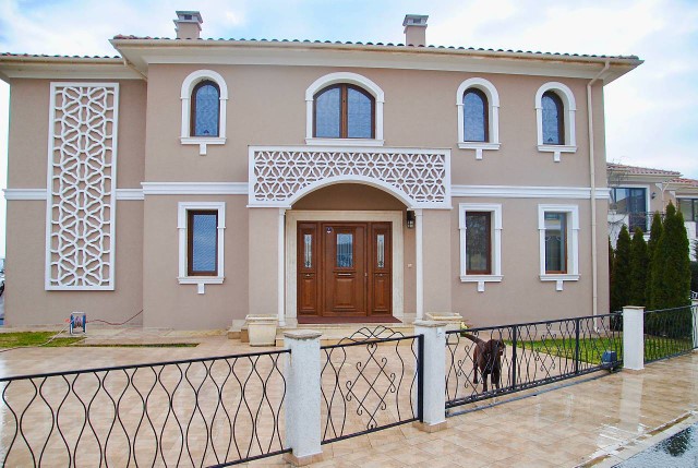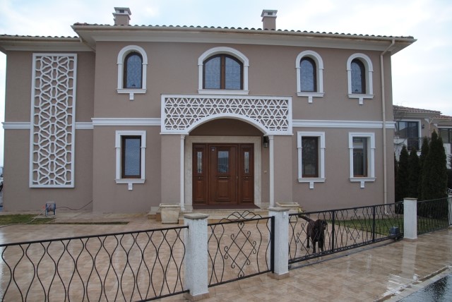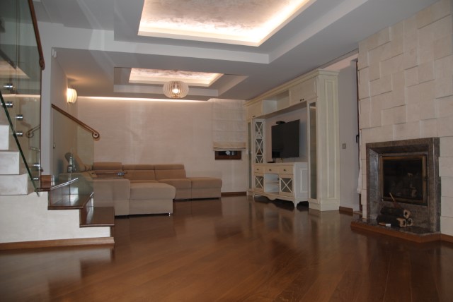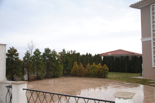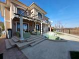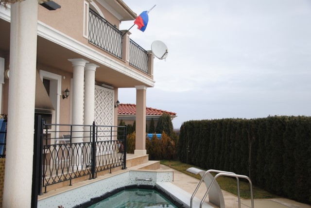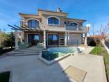 Finishing works: The house is fully finished with first-class materials - internal (6 cm) sound insulation and external (12 cm) thermal insulation; spanish fine stoneware tiles and three-layer parquet (18 mm with cork base) on the floor; painted with decorative plaster and decorative stones laid on the walls; painted with decorative plaster and ornaments on the ceilings; placed French windows with five-chamber PVC joinery with energy-saving double-glazed windows with gas from the German company Schuco; placed entrance and MDF interior doors; shower/bathrooms with toilets - fully finished and equipped, terracotta tiled floor, faience on the walls, sanitary ware, bidets, hydromassage shower cabins, massage shower "Sharko", bathtube, bathroom radiators, mixing taps HANSGROHE with thermoregulator; heating in winter is solved by two independent circuits - high quality, water underfloor central heating by heat pump Daikin (installed in the basement) throughout the house and central ventilation and air conditioning Daikin (in each room) + placed fireplace in the living room; 4 solar panels are installed on the roof (for heating the water in the summer in a water heater 500 liters and with a heat pump in the winter + heating the pool); "Aquaphor" system for drinking water purification is installed, the filters of which are in the basement, and in the kitchen there is a separate mixing tap; LED lighting and beautiful chandeliers are installed; installation for optical internet + Wi-Fi internet and satellite TV; an alarm system of the latest generation is installed.
