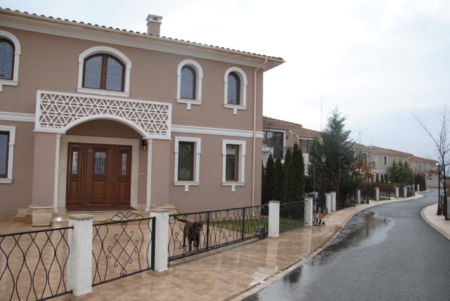 The houses are in a finished state. They are equipped with everything necessary for your luxurious accommodation. The infrastructure includes already constructed asphalt road to the complex, street network, sidewalks, grounds, street and park lightning, power substation, water-conduit and effluent treatment plant. The electrical wiring and plumbing are done according to European quality standards. The buildings are with monolithic construction, WIENERBERGER bricks, with perfect hydro, thermal and sound insulation, armoured doors and laminated HDF interior doors, six-chamber PVC system with window glazing. The roof system is BRAMAC. The access to the complex is under control which provides peace and security.