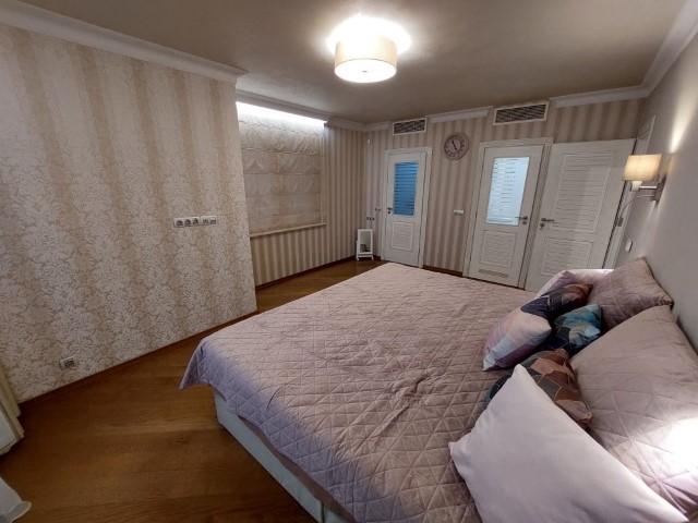 We offer for sale a beautifully designed individual design project, luxury, well maintained, spacious, comfortable, fully furnished, three-storey house - villa - townhouse with private pool, covered veranda with barbecue area, own maintained yard and three parking lots, recreation area / SPA center with jacuzzi (winter), sauna. The house has a total built-up area of 393 sq.m and a built-up area of 126 sq.m. The house has all the amenities that a household needs to live in comfort and tranquility. The excellent distribution of the premises creates the feeling of a extensive and spacious home. Everything is created for your luxury and comfort.