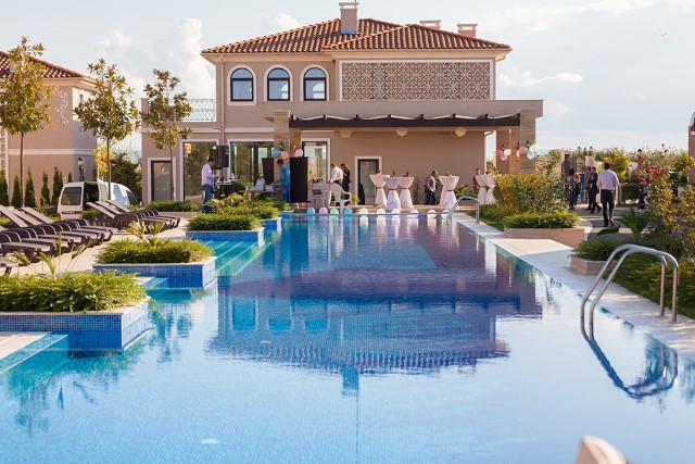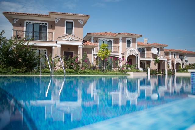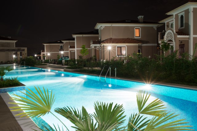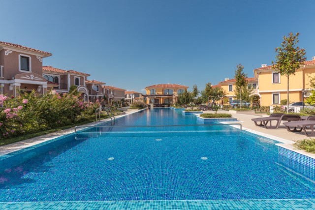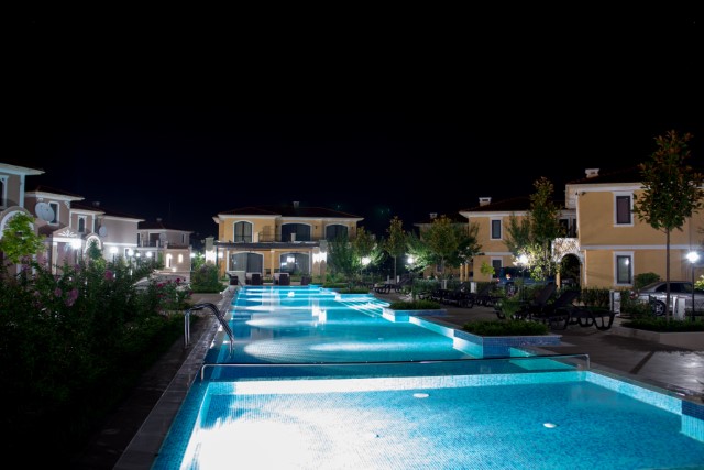 Description: Victoria Royal Garden is a complex of 28 luxurious houses in Mediterranean style, each of which has its own yard area, soft and warm colors, ornaments on the facades. They are set around a spacious relaxation area which includes summer house, fountain, swimming pool,